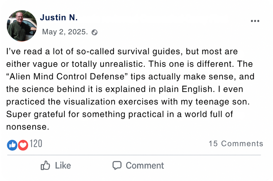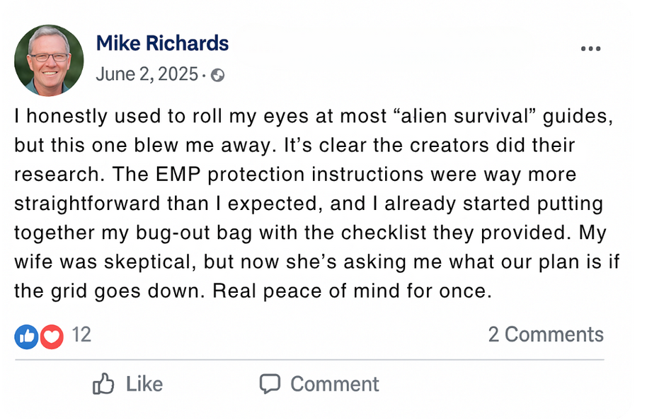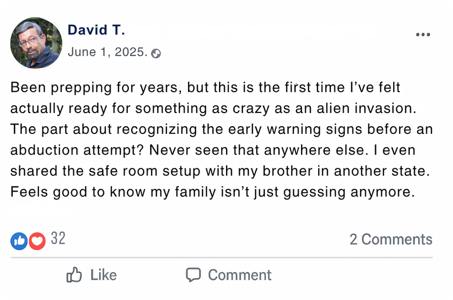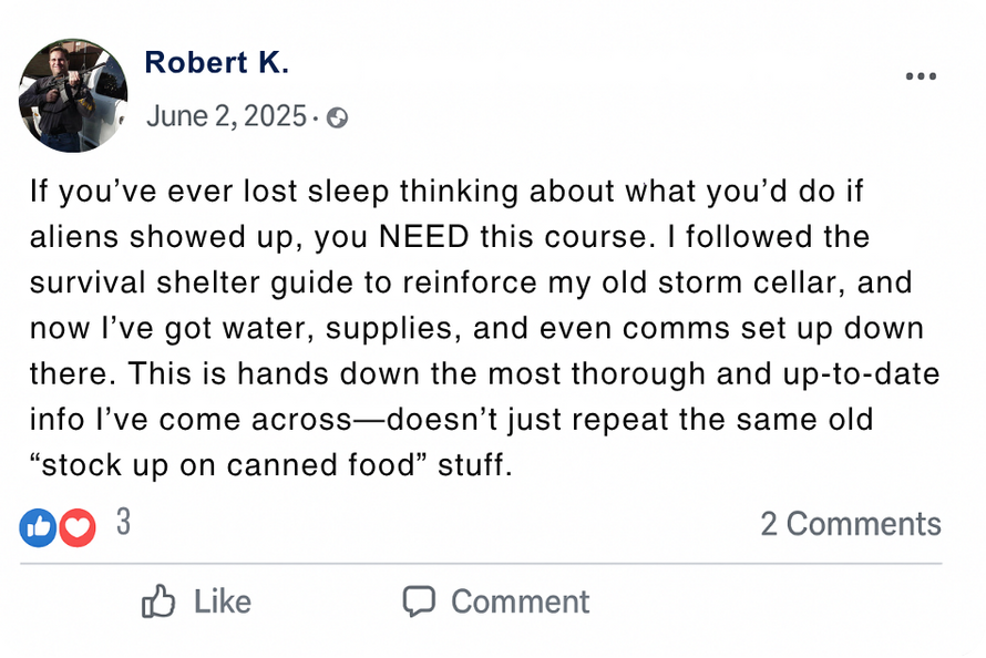 I’ve been tracking UFO sightings and alien encounters for over a decade, and it’s clear we’re getting closer to the day when they’ll make contact. This course is hands-down the best resource I’ve found for preparing for that moment. The "Survival Shelter Setup" module helped me design an off-grid shelter that I know will be undetectable by alien sensors. The detailed plans were easy to follow, and now I feel much more secure knowing my family will be safe when things escalate. It’s refreshing to find a course that takes the threat seriously instead of dismissing it as science fiction. Highly recommend this to anyone who understands what’s coming.